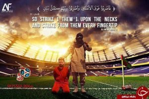 به نقل از دیلی میل این گروه تروریستی پوستر تبلیغاتی را نشر کرده که بر بنیاد این پوستر داعش می خواهد در مسابقات جام جهانی عملیات تروریستی انجام دهد و در اطراف ورزشگاه ها بمب گزاری کنند.