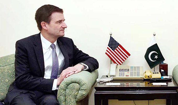 دیوید هیل سفیر آمریکا در پاکستان در پی تصادف موتر آتشه نظامی سفارت آمریکا در اسلام آباد که به جان...