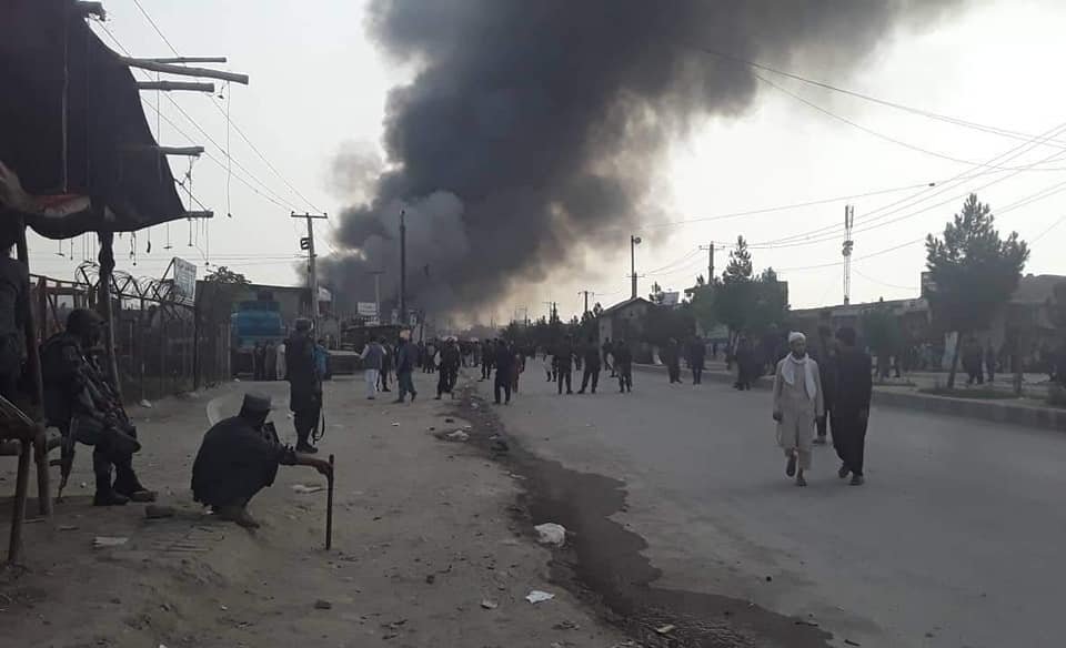 بعد از حمله موتربم با استفاده از تراکتور در کمپ «گرین ولیج» در حوزه نهم امنیتی شهر کابل، باشنده گان...