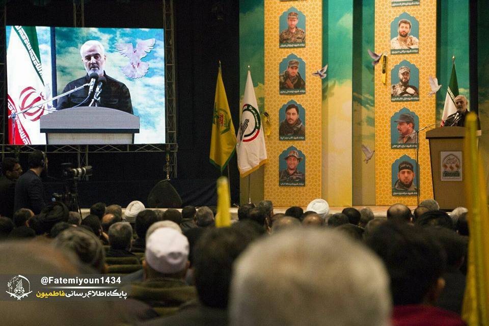 بدوره تحدث القائد سليماني وشكر المجاهدين وعائلهم بما قدموه من تضحيات في هذا الطريق ، هؤلاء المدافعين لم يدافعو عن الحرم فحسب بل دافعو عن حرم الانسانية ايضاً.