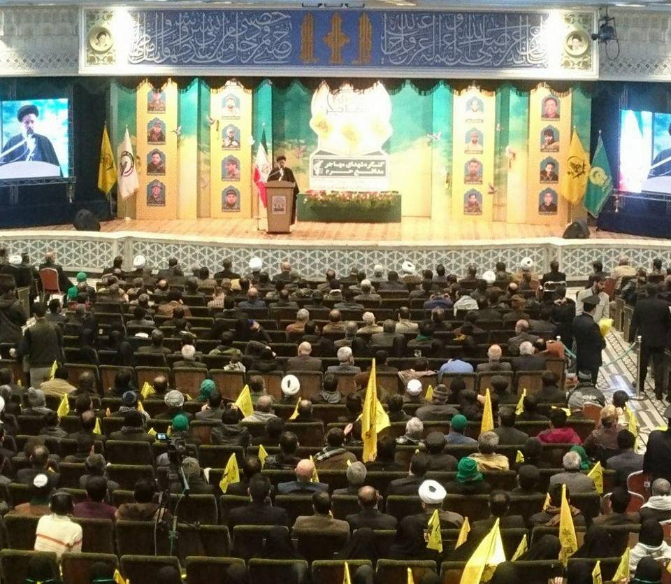 اول مؤتمر لشهداء المدافعين عن الحرم على مسرح الحرم الرضوي في مدينة مشهد ايران وبحضور عوائل الشهداء والجرحى .