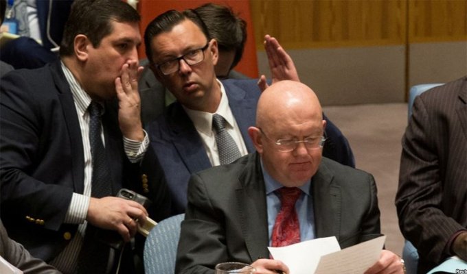 واسیلی نبنزیا نماینده دایمی روسیه در سازمان ملل، قطعنامه پیشنهادی آمریکا به شورای امنیت علیه سوریه را وتو کرد.