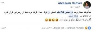 کاربران مطالب شان را با عکس های ابراهیمی که به روی آن عدد ۵۴ بوشته شده با هشتک” ۵۴ لک را پس بتی” به نشر میرسانند.
