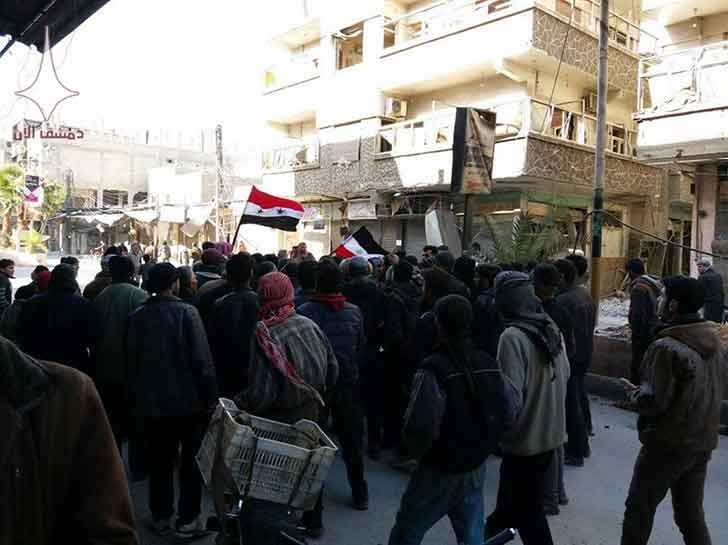 Информационное агентство Средний Восток, в демонстрации в поселении Аль-Газляния приняли участие тысячи жителей деревень Восточной Гуты в Сирии. Выпустить мирных граждан на подконтрольную правительству Сирии территорию, таковы были требования. Как сообщает SANA.