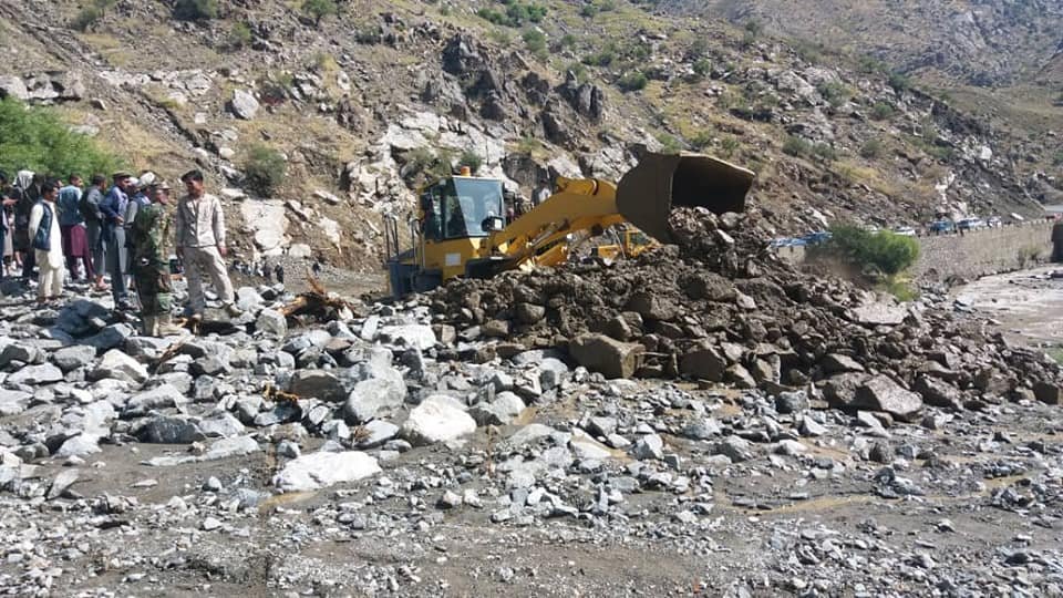 شاهراه سالنگ که به دلیل سرازیر شدن سیلاب به روی ترافیک مسدود شده بود، بعد از پاککاری دوباره به روی...