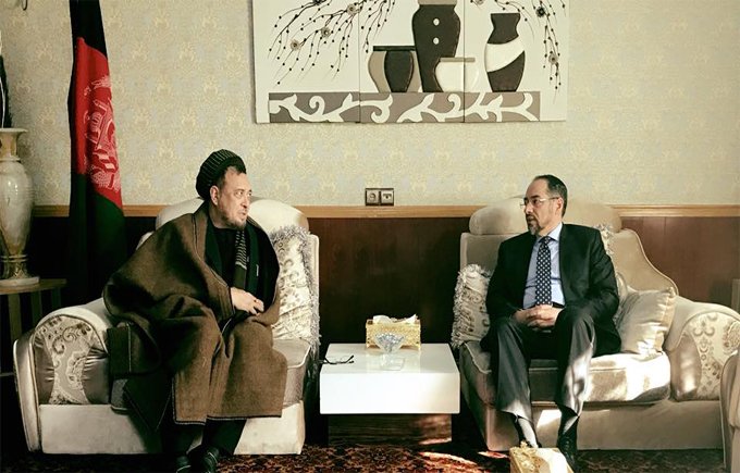 صلاح الدین ربانی رییس حزب جمعیت اسلامی افغانستان روز گذشته با استاد محقق رهبر حزب وحدت اسلامی مردم افغانستان و...