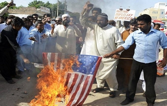 تظاهرات کنندگان در نقاط مختلف پاکستان در واکنش به اظهارات سال نوی میلادی ترامپ پرچم آمریکا را به آتش کشیدند....